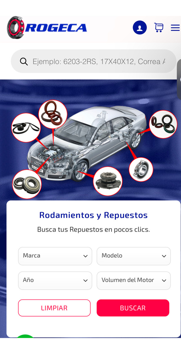 En ROGECA somos especialistas en repuestos automotrices e industriales, ofreciendo productos como rodamientos, retenes, mazas, correas, poleas y mucho más. Nos destacamos por brindar atención personalizada, despacho a todo Chile y productos 100% garantizados. Con años de experiencia en el rubro, nos comprometemos a entregar calidad, rapidez y confianza en cada compra.